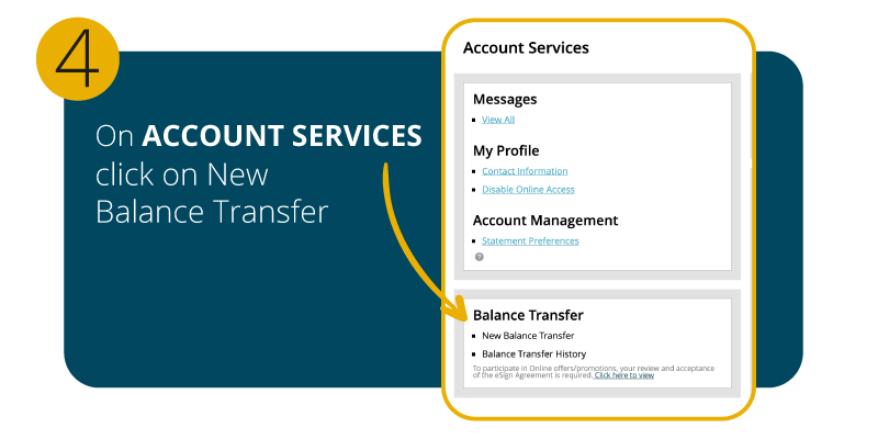 To start your fast and easy balance transfer request, click “Transfer Now” to be directed to your online banking portal. For detailed instructions please check the step-by-step instruction below.